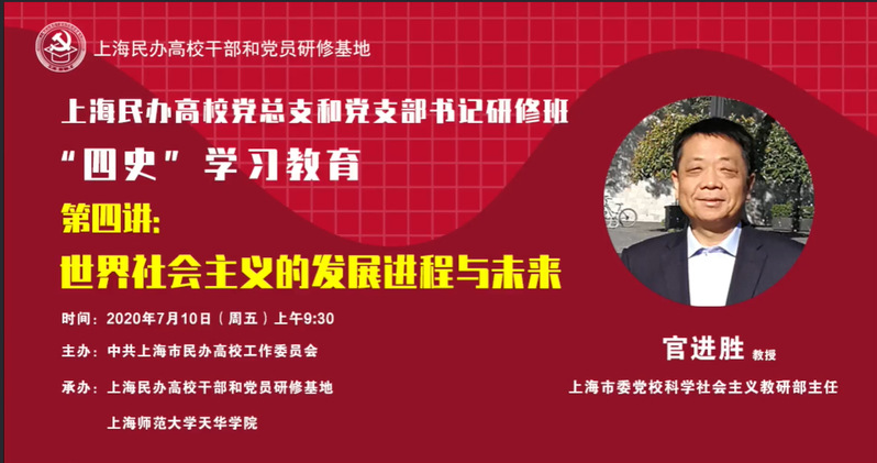 7月10日上午,信息与机电学院党总支组织师生党员、入党积极分子参加了由官进胜教授主讲的主题为“世界社会主义的发展进程与未来”的线上讲座,大家受益匪浅。官教授追本溯源讲述了社会主义发展史上的重要瞬间,社会主义从一国到多国的实践过程中,列宁斯大林的苏联模式到新中国对社会主义的探索和实践,中国开启改革开放的历史历史性决策,带来国家和社会发展的巨大变化。学习社会主义发展历,有利于我们立足于上海这座城市的红色历史和发展成就,从世界历史的大事业和社会主义发展过进程中融通党史新中国史和改革开放,在历史与现实的对比中坚定社会主义特别是中国特色社会主义的信念。从世界社会主义发展史看,社会主义制度是当前阶段最适合社会发展的制度。没有共产党就没有新中国,没有共产党就没有我们现在的好生活。科技革命迅猛发展,社会发展趋势不可逆转。展望未来,我们对社会主义的前景充满信心,坚信21世纪社会主义将走向复兴,社会主义革命的道路和社会主义模式将更加多样化,世界社会主义将是更加发展、全面进步的社会主义。当今世界正处于新的百年未有之大变局中,最令世人瞩目的则是中国特色社会主义进入新时代。云培训结束后,官教授的讲座引起了全体党