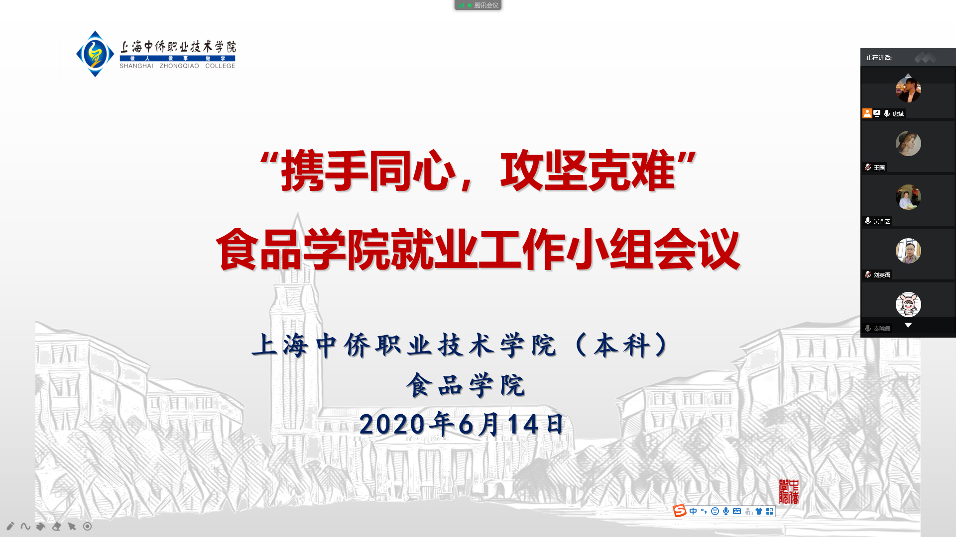 今年由于新型冠状病毒肺炎疫情的影响,食品学院就业工作面临着巨大冲击和压力,目前就业工作进入重要的时间节点,6月14日,食品学院通过腾讯会议召开了毕业生就业工作小组专题视频会议,会议由食品学院直属党支部书记唐斌主持。首先,唐斌书记对学院目前的就业形势和就业状况进行了解读和分析,目前学院整体的就业情况和就业率还不容乐观,对于部分就业难的学生的问题还没有彻底解决。其次,毕业班辅导员杨彬老师对未就业同学的情况进行了一一介绍,把所遇到的问题和情况也一并提出进行交流。接着,与会的各位老师对各自了解的学生情况进行了交流和探讨,共同为学生的就业进行出谋划策。随后,常务副院长吴酉芝表示自己会全力支持学院就业工作,并希望老师们能够多提供一些就业资源,扩充就业渠道,积极推荐学生就业,并再次强调学生就业是大事,要求全院师生共同参与就业工作,克服当下困难,帮助毕业生顺利就业,攻坚克难,做好关键少数学生的工作。最后,唐斌书记作总结发言,虽然当前就业形势更加严峻,但就业要求却更高,为了做好此项工作,不仅仅是需要辅导员的付出,更是要依靠全院老师的协调合作与共同努力。此次会议的召开表明了学院对就业工作的重视,营造全院就