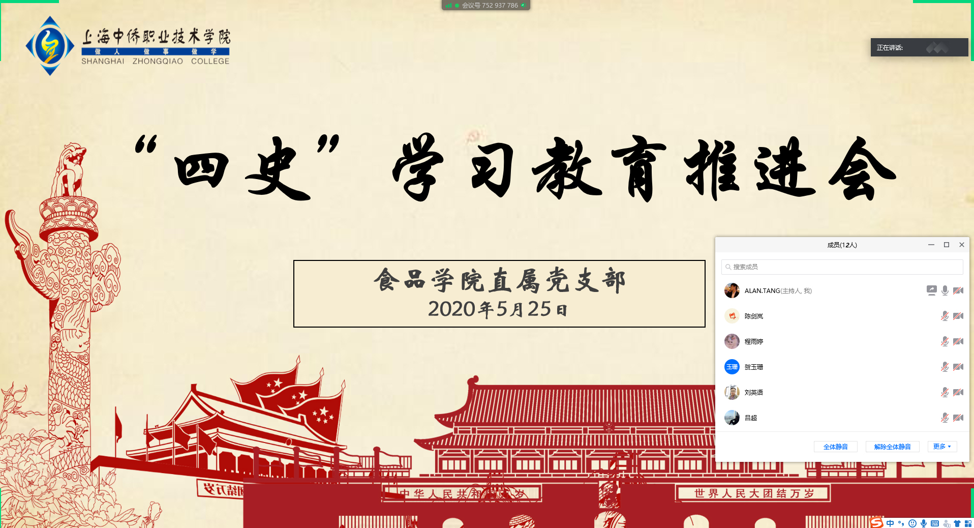 学好党史、新中国史、改革开放史、社会主义发展史是牢记党的初心和使命的重要途径,是党员的一门重要必修课,也是爱国主义教育的重要组成部分。5月25日19:00食品学院在腾讯会议召开了“四史”学习教育推进会。会议由食品学院直属党支部书记唐斌主持,学院全体党员参加。首先,党支部书记对学院全面开展“四史”学习教育进行了部署。紧接着食品学院常务副院长吴酉芝讲到:开展“四史”学习教育是为坚守党的初心和使命夯实基础,是为坚定理想信念清扫冗余。作为工作在高等职业院校的教育人,从教近10年来,亲身感受到了食品学院在软硬件上日新月异的变化,如今作为一名教育管理者,要进一步深入学习贯彻习近平总书记关于推进国家治理体系和治理能力现代化的系列重要论述,着眼城市永续发展和百姓对教育的高质量需要,以职业本科教育发展契机,努力探索学院教育管理新路径,为把食品学院建成具有一定影响力的特色学院而奋斗。随后,全体党员一同对《中国共产党历史》第一卷部分内容进行了学习,并发表感悟。通过学习,党员教师们提高了对党章党史、新中国史、改革开放史和社会主义发展史思想认识,更坚定了坚守初心牢记使命的理想信念,纷纷表示要加强自身业务素质,立