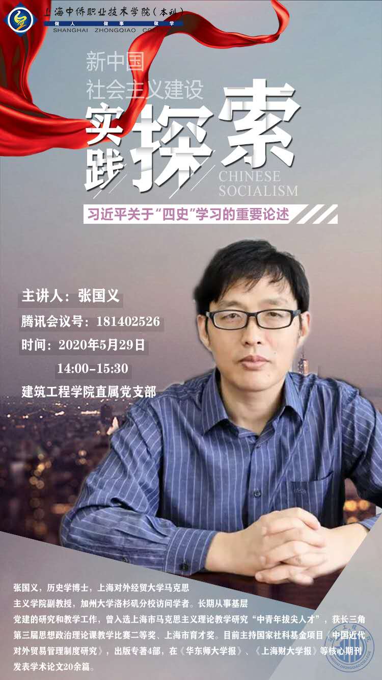 2020年5月29日经济与管理学院第二党支部全体党员教师参与建筑工程学院直属党支部开展的“新中国社会主义建设实践探索”---习近平关于“四史”学习的重要论述的学习,本次学习由上海对外经贸大学张国义教授主讲。经管学院第二党支部教师党员聆听后纷纷发表感言,陈萍萍老师说今天下午听了张国义教授关于“新中国社会主义建设的实践探索”的讲座,张教授以改革开放前的30年为起点,结合自身的学习经验,从伤痕文学、《平凡的世界》等一个个生动的例子给我们讲述了改革开放史在我国发展过程中的作用,任何历史都不能片面地来理解,应该从一个大局全面的来理解和认识,通过学习让我更加深刻的理解了现在的美好生活正是中国一代代革命领导人不懈奋斗的结果,了解历史是我们知识爱国、知识爱党的重要手段,可以从中汲取精神力量、汲取经验智慧,也可以增强守初心、担使命的思想自觉和行动自觉。王殿安教授说今天听了张国义教授的报告,很受启发和教育。我出生于上个世纪50年代,亲身经历了中国波澜壮阔的改革开放大潮,是改革开放的见证者。改革开放前,我党思想僵化,左倾错误盛行,对国际国内形势判断错误,长期以阶级斗争为纲,忽视经济建设和民生改善,以至于发生