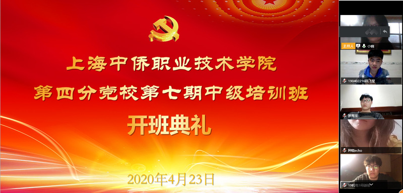 2020年4月23日18:30,上海中侨职业技术学院(本科)第四分党校第七期中党开班仪式利用“云上”见面的方式与各位学员聚在一起。信息与机电学院党总支书记刘群,相关辅导员老师及全体培训学员参加了仪式。开班仪式由胡婉君老师主持,在庄严的国歌声和国旗的见证下拉开序幕。在这一特殊时期,面对国旗,为我们伟大的祖国感到骄傲,爱国情怀油然而生。首先,第二党支部书记胡婉君老师对于这次党校课程安排进行了讲解,培训中安排了理论学习、小组讨论以及实践活动,让学员能够在学习中从生活中从思想上积极入党。理论学习中,各位学员应要积极认真学习,小组讨论中可热烈发言,实践活动中去真实的感受历史的人与物。其次,第二党支部组织委员赵淑静老师对本期中党学员们提出了几点希望:希望大家能认真对待中党课程,能严格遵守纪律,以高标准来要求自己,认真完成课程中涉及的学习和实践任务。最后,党总书记刘群老师对学员提出几点学习要求,一是珍惜学习机会,认真学习每堂课,认真做好笔记。二是在实践中检验学习成效,做到知行合一;三是提高学习成效,善于观察思考、学懂悟透,活学善用。珍惜韶华,不懈努力,把自己的人生理想融入国家和民族的伟大事业中,不惧
