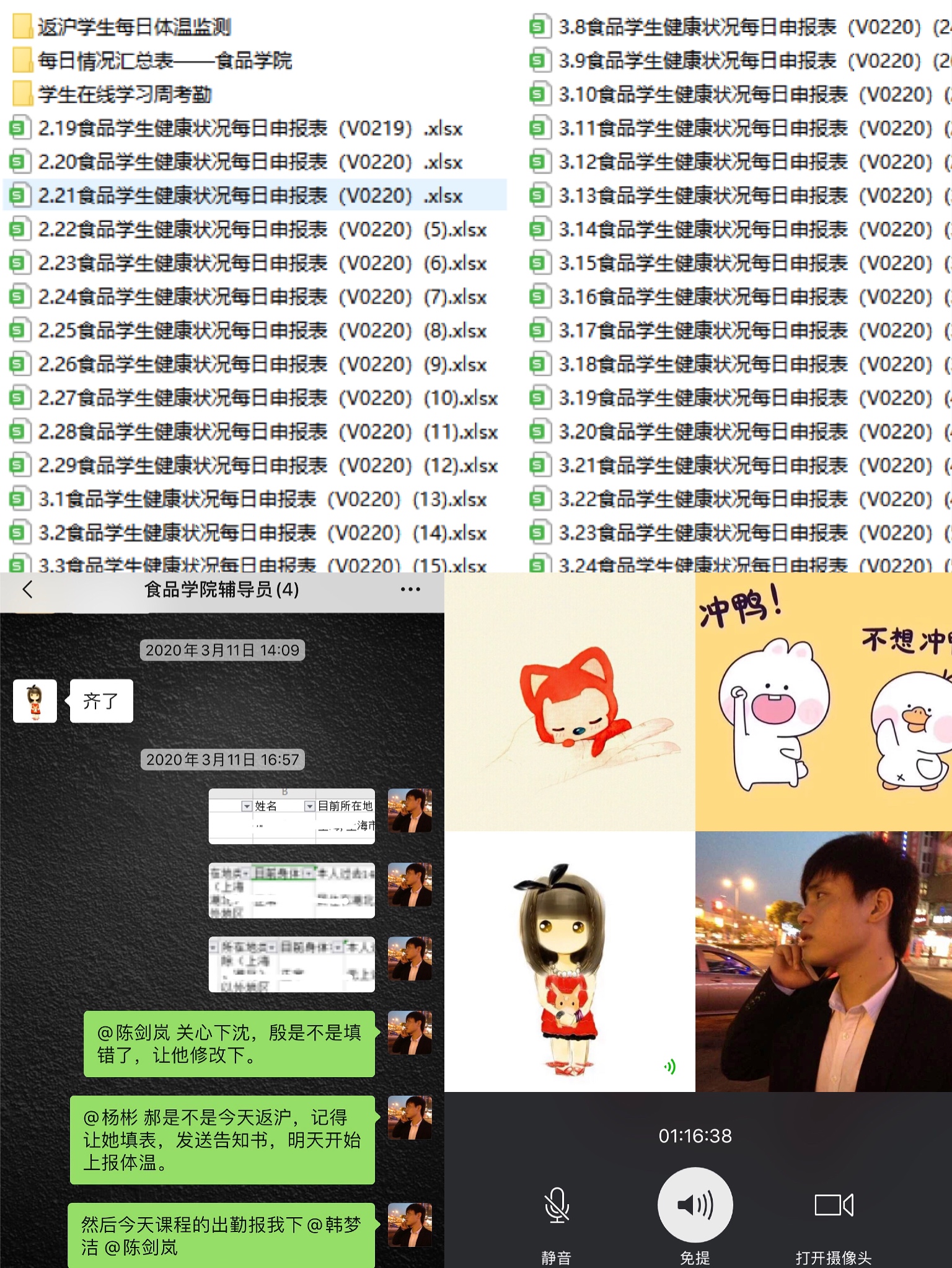 2020年初,新年的爆竹声还未响起,一场没有硝烟的疫情战役突然打响,全国人民的心揪在了一起,关注疫情成为身边每一个人最重要的事情。无数的英雄逆行而上,驰骋在防控疫情的每个角落,平凡人做出不平凡的事。在这特殊的时期,作为一名青年人,作为一名共产党员的他,总在想着,我可以为这次疫情做些什么?校园净土,我奋力作为食品学院的学工负责人,唐斌同志从1月20日校学工部发出《注意预防新型冠状病毒告知书》后,便积极配合学校疫情工作部署,深入推进本学院学生的思想政治工作、在线学习、防疫宣传、心理疏导等各项工作,确保守好一段渠,种好责任田,为守校园净土做出自己的贡献。近90天的寒假期间,唐斌同志每一天都在进行食品学院学院学生的情况搜集,汇总数据、核对信息、上报材料等工作。带领学院的辅导员队伍每天进行动态关注并摸排学生身心情况、坚持落实执行学校要求的日报告制度、关心学生网课学习情况、积极加强家校互通等多个方面,确保全面掌握学生数据,做到精准摸排,对于个别受到疫情影响家庭经济的学生,予以特别关注,并全力做好实习学生的复工情况,保证每个学生都可以在家安心生活,安心学习,安心实习。此外,因学院有湖北籍的辅导员和学