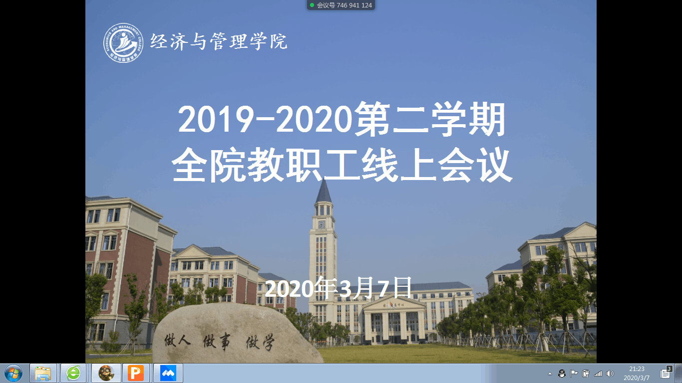 2020年3月7日晚上8点,经管学院召开2019-2020第二学期全体教职工视频会议,学院全体60名教职工参加在线会议,会议由院长助理杨慧老师主持。教学副院长王殿安教授介绍了我院在线教学的总体情况,他首先肯定学院任课教师的教学态度认真负责,教学效果符合预期,深入贯彻落实习总书记关于打赢疫情防控阻击战重要指示精神,停课不停学,停课不停教。在线教学检查过程中,普遍存在的共性问题进行了通报,并对线上教学工作提出了合理化建议,希望在座的青年教师提高课堂驾驭能力。督导陈思明教授从学校和学院层面,就在线教学过程检查中存在的问题,进行反馈评价。在督导听课中发现大部分教师准备充分,对如何提高网上教学质量,在教学实践过程中进行积极探索。如何解决学生上线不上课的问题?如何提高学生的学习积极性等问题。陈教授建议教师在直播中,可以适当打开摄像头,让教学更有亲和力。院长助理李娟老师就目前任课教师在线教学问题,从成绩,问题,建议三个方面进行了交流。我院本学期共有85门次课,1136名学生全部参加在线教学。教学平台的选择,多种多样,基本上学校教务处提供的平台都有老师选择使用。杨慧老师和陈灵萍老师主动报名线上教学公开