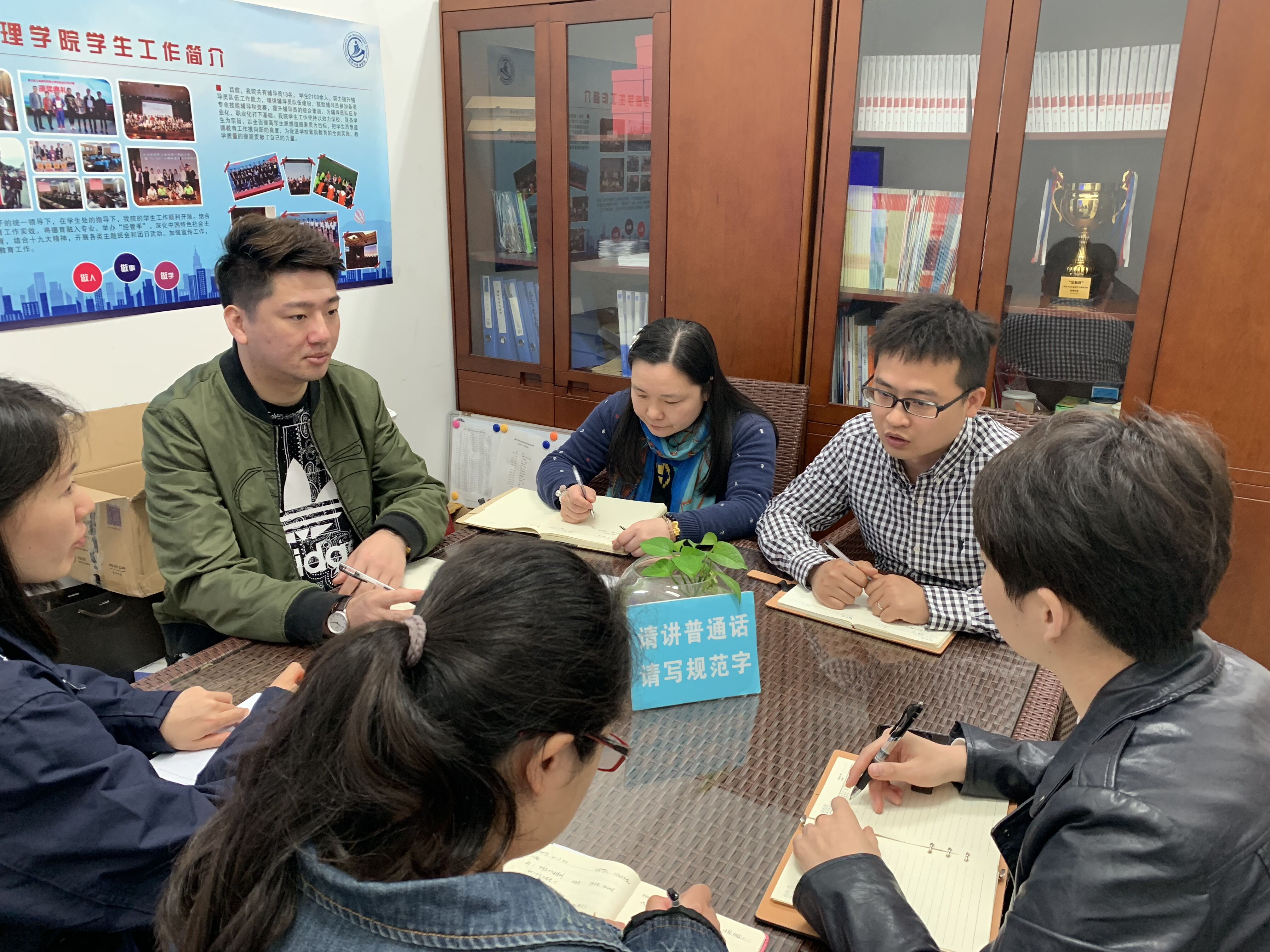 为深入学习贯彻习近平总书记在高校思想政治理论课教师座谈会上的重要讲话,抓好立德树人的根本任务,4月24日上午9:30分,经济与管理学院第一党支部在3号楼313会议室召开组织生活会。会议由经管学院第一党支部书记曹小玉老师主持,党总支书记石成玉老师、副书记郭骏老师及第一党支部党员老师参加。会上,郭晓平老师首先介绍了习近平总书记在学校思想政治理论课教师座谈会上重要讲话的主要内容:“思想政治理论课是落实立德树人根本任务的关键课程,办好中国特色社会主义教育,思政课作用不可替代,思政课教师队伍责任重大,要发挥教师的积极性、主动性、创造性;我们对思想政治工作高度重视,始终坚持马克思主义指导地位,大力推进中国特色社会主义学科体系建设,为思政课建设提供根本保证,推动思想政治理论课程改革创新,要不断增强思政课的理想性、理论性和亲和力、针对性。”其次,郭晓平老师从自身出发,结合习总书记讲话和辅导员实际工作,她表示,六个要求和八个相统一虽然是针对思政理论课老师提出的,但是对辅导员工作同样具有指导意义。辅导员工作在大学生思想政治教育的第一线,对大学生的成长成才具有重要意义。作为一名党员辅导员,要有身份意识和责任