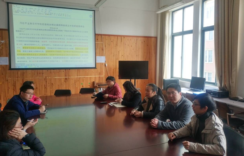 “思想政治理论课是落实立德树人根本任务的关键课程”、“办好思想政治理论课关键在教师,关键在发挥教师的积极性、主动性、创造性”、“推动思想政治理论课改革创新,要不断增强思政课的思想性、理论性和亲和力、针对性”,3月18日,中共中央总书记、国家主席、中央军委主席习近平主持召开了学校思想政治理论课教师座谈会并发表重要讲话,对广大思想政治理论课教师提出殷切期望。根据学校安排,经济与管理学院积极动员,召开专业主任会议逐步落实,要求以各专业为单位,深入学习习近平总书记在全国思想政治理论课教师座谈会上的讲话精神,要求探索专业课程和教学方式中蕴含的思想政治教育资源,努力实现全员全程全方位育人。物流专业教师们深入学习了习近平总书记重要讲话精神,并结合本专业的工作实际,认真思考并讨论了当前本专业思政课程实践中所面临的种种问题,为“思政进课堂”献言献策,进一步坚定了讲好思政,学好思政的信心和决心。证券、金融专业教师纷纷表示,在习近平新时代中国特色社会主义思想指引下,广大教育工作者要全面贯彻党的教育方针,落实立德树人的根本任务,努力培养担当民族复兴大任的时代新人。国际商务专业教师还分别结合各自的实际工作,就如