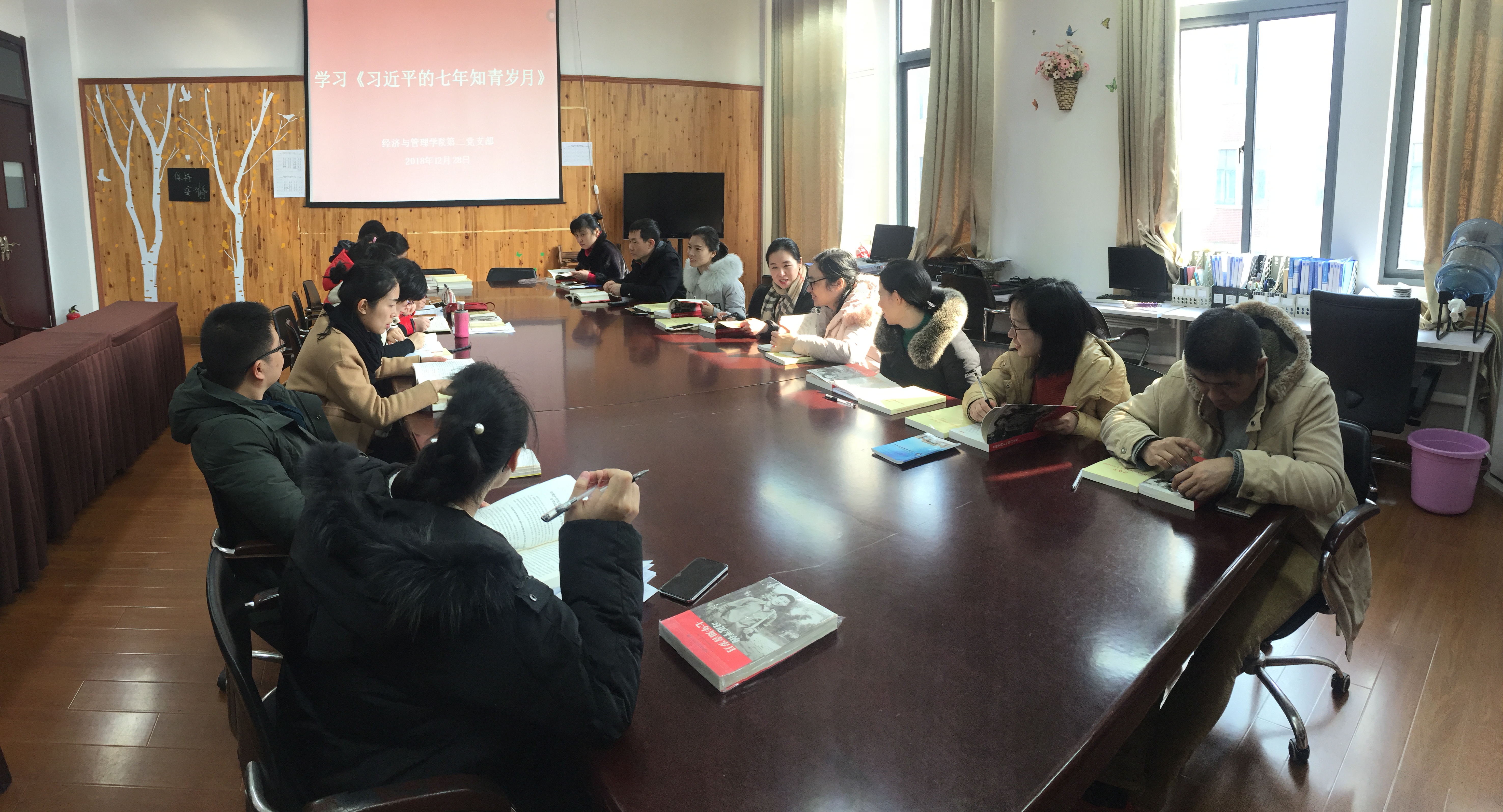 《习近平的七年知青岁月》一经出版,社会上引起了广泛关注和强烈反响。2018年12月28日中午12:15,经济与管理学院第二党支部组织党员在3号楼313学习《习近平的七年知青岁月》。会议由支部书记杨慧主持,15名党员出席。会上,杨慧书记先传达了学校关于学习《习近平总书记系列重要讲话精神的学习制度》。接着,全体出席的党员学习《习近平的七年知青岁月》一书。会议要求,要充分认识《习近平的七年知青岁月》的重大教育意义,深入开展学习践悟活动,在学习践行习近平总书记系列重要讲话精神上发挥表率作用,增强对习近平总书记的思想认同、政治认同、感情认同,学习习近平总书记当年那种“苦其心志、劳其筋骨、饿其体肤、空乏其身”的艰苦奋斗精神,志存高远、脚踏实地,勇于创新、勇于进取,在实现“两个一百年”奋斗目标和中华民族伟大复兴中国梦的实践中建功立业。