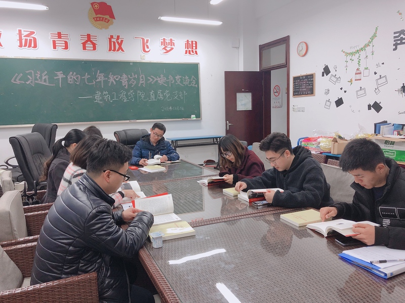为深入学习贯彻习近平总书记系列重要讲话精神,引导广大党员自觉学思践悟青年习近平的青春故事,2018年12月25日建筑工程学院直属党支部召开《习近平的七年知青岁月》读书交流会。《习近平的七年知青岁月》是中央党校策划组织的系列采访实录。该书通过29位受访者讲述自己当年亲身经历的往事,用真实的历史细节再现了习近平总书记1969年1月至1975年10月在陕北黄土高原“苦其心志、劳其筋骨、饿其体肤、空乏其身”的历练故事,再现了习近平总书记七年知青岁月的艰苦生活和成长历程。读书交流会上同志们带着感情、带着敬畏、带着思考,分享了学习后的收获和体会,表达对第一个在共和国成长起来的党的总书记的敬佩和爱戴。同志们发言踊跃,气氛热烈。大家一致认为,《习近平的七年知青岁月》是当代青年树立正确人生观、励志成才的生动教材,是青年干部锤炼党性、按照党的要求健康成长的生动范本。作为一名党员要带头学好用好《习近平的七年知青岁月》这本书,以青年习近平为榜样,在实现“两个一百年”奋斗目标的伟大征程中,不忘初心、艰苦奋斗,努力走好新的长征路。