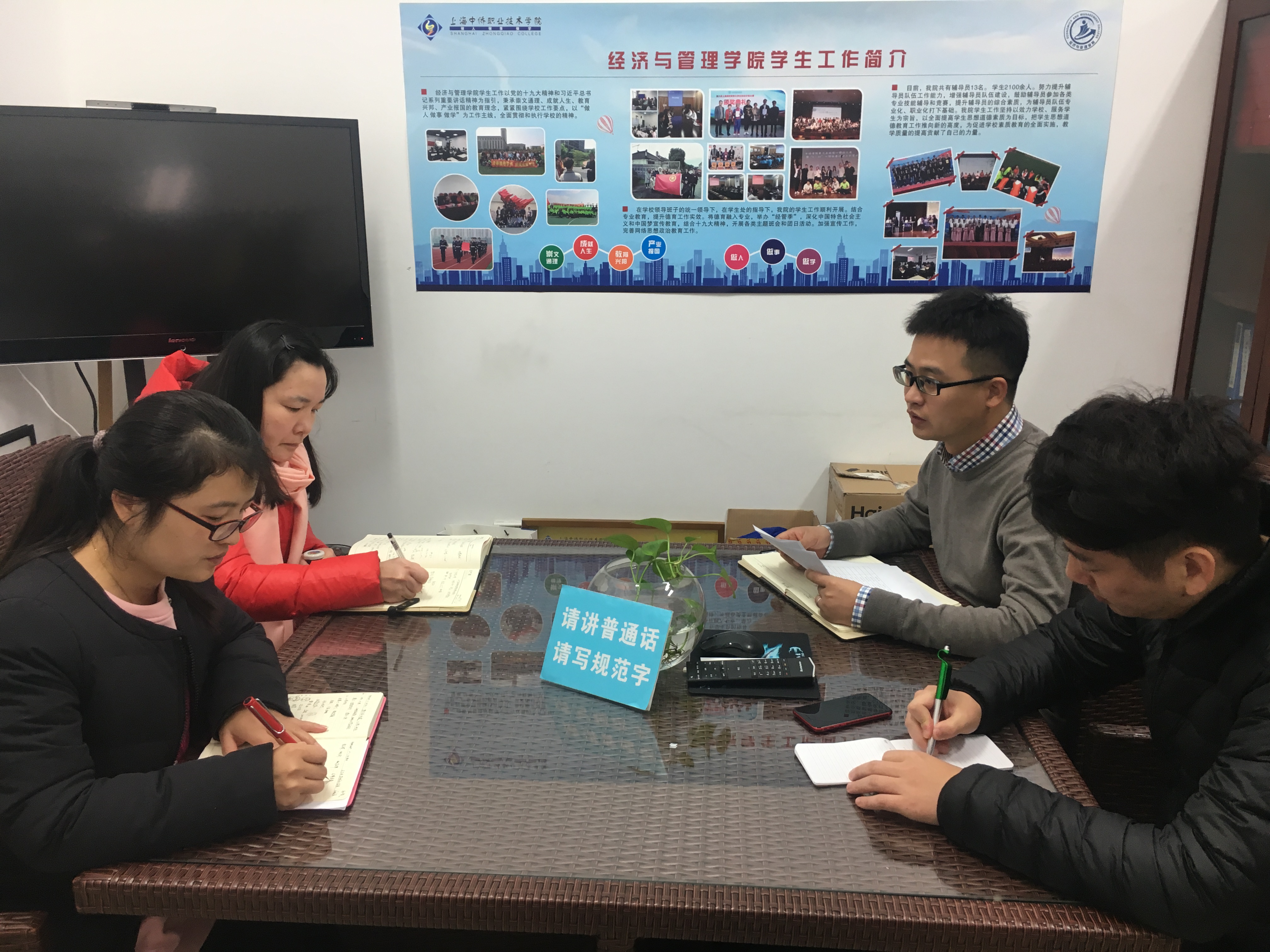 为了学习好习近平总书记好系列重要讲话中的理论创新成果,更好地深入贯彻落实党的十八大和十九大精神,进一步坚持和发展中国特色社会主义,更加自觉地同党中央保持高度一致,更好地贯彻落实市委一系列新的发展战略和决策部署,根据上级关于学习《习近平总书记系列重要讲话精神学》的通知,和学校关于学习《习近平总书记系列重要讲话精神的学习制度》的安排,经济与管理学院党总支部召集各支部书记,安排下一阶段各支部学习工作。此次学习主要采取两种形式:集中学习和个人自学,并对学习情况检查考核。希望通过定期的学习入脑入心、联系实际、推动工作,使全体教师党员充分认识深入学习习近平总书记系列重要讲话精神的重大意义;全面准确学习领会习近平总书记系列重要讲话精神的基本内涵;深刻把握习近平总书记系列重要讲话贯穿的立场观点方法。为学校发展提供强大的思想保证、精神动力和智力支撑。