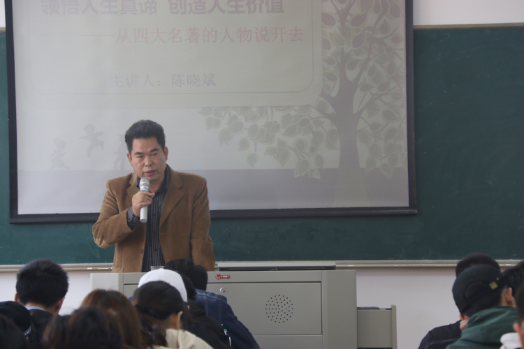 11月1日下午,校长陈晓斌教授为2017级学生讲授了一堂别开生面的《领悟人生真谛,创造人生价值——从四大名著的人物说开去》思修课,在学生中引起热烈反响。课堂上,陈校长从学生熟悉的中国四大名著开始说起,他重点挑选了《水浒传》的宋江、《三国演义》中的刘备、曹操和品三国的易中天、《西游记》中的唐僧师徒五人和《红楼梦》中的贾宝玉和林黛玉来和学生分析他们的性格特点以及对我们为人处世的启发意义。陈校长最后总结到,从这些文学作品里性格各异的人物中,他们的为人处世方式对我们有很多启示作用,需要取其精华、去取糟粕。他强调学会做人是我们每个人终身需要学习的课题,要想成就一番大事业首先就要学会做人和掌握好本领以及有强烈的责任感,从而创造出有价值的人生。陈校长的殷切希望和中侨学院的校训“做人,做事,做学”相得益彰。如何从中国古代经典文学作品中汲取营养并赋予其现代性和时代性,发挥思政课程的思想引领、价值塑造的重要作用。我校积极探索高校“课程思政”新模式,积极培育扶持教学项目团队,以团队形式授课,打造教学形式多样新颖、课程内容丰富的思政课,吸引学生的兴趣,使得学生抬起头、坐的住,让思政课活起来,真正把思政课建设成