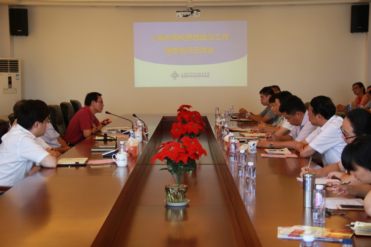 8月11日上午,上海市高校思政工作专项督查工作组第五督查组组长张智强,市民办高校党工委副书记、办公室主任王瑞杰,市民办高校党工委副调研员尹福会,市委督查室马蔚琦来校反馈督查意见,传达市委思想政治工作领导小组第二次会议精神。校长陈晓斌,党委书记陈俊傲,副校长潘立本、党委副书记、纪委书记管琰琰等校领导班子及校思想政治工作领导小组成员参加了反馈会。