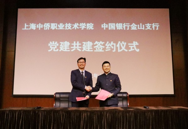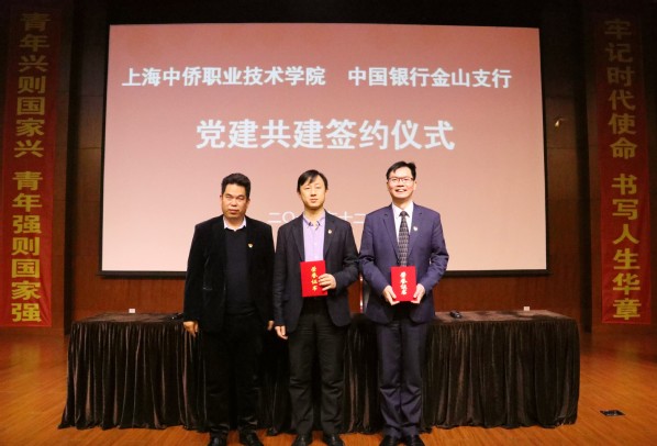这场宣讲报告会是中侨学院学习宣传贯彻党的十九大精神系列活动之一,也是进一步推动构建城市基层党建新格局。报告会前上,党委书记陈俊傲和中国银行上海市金山支行党总支书记、行长周容一起签订了双方党建共建协议,并为“职业再教育培训基地”揭牌。上海中侨职业技术学院聘任张欣园代表和周容行长为客座教授。校长陈晓斌为他们颁发了聘书。