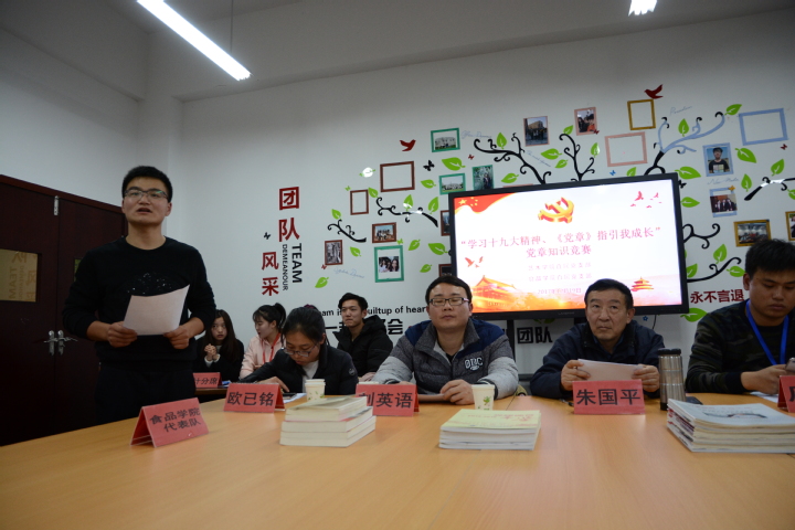 2017年12月19日,艺术学院直属党支部和食品学院直属党支部联合举办的“学习十九大精神、《党章》指引我成长”党章知识竞赛,在五号楼311艺术学院分团委办公室如期举行。