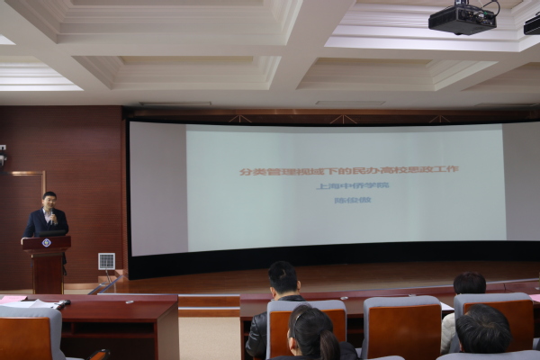 党委书记陈俊傲传达了民办高校新政新规的相关情况。重点分析了民办高校分类管理视域下的高校思政工作,加强党对民办学校的领导,优化民办学校行政审批,推进民办学校分类管理改革,完善政府扶持政策,落实现代大学制度,强化规范发展,提高办学质量,保障师生权益,提升管理水平,发挥各方作用。陈书记表示,高校思政工作要做到:对标文件、统一思想,不忘初心,立德树人:要有大楼大师大德大爱,提升办学质量和育人水平。