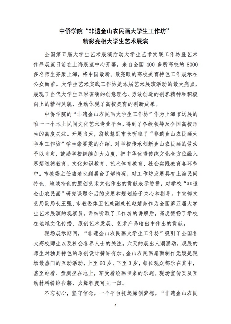 上海民办高教通讯《中侨学院"非遗金山农民画大学生工坊"精彩亮相大学生艺术展演》