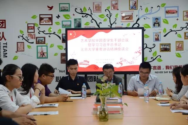 习近平总书记在与北大师生座谈时发表了重要讲话,对青年学子的殷殷嘱托和希冀引起社会各界强烈反响,掀起学习热潮。2018年5月16日晚20:00,艺术学院于5号教学楼311分团委办公室召开艺术学院分团委学生干部会议暨学习习近平总书记北京大学重要讲话精神座谈会。