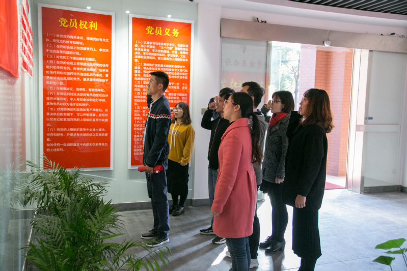 建工学院的党员们面对鲜红的党旗,高举右手,庄重地在党旗下重温了入党誓词,使每一位党员再一次接受了心灵的洗礼。