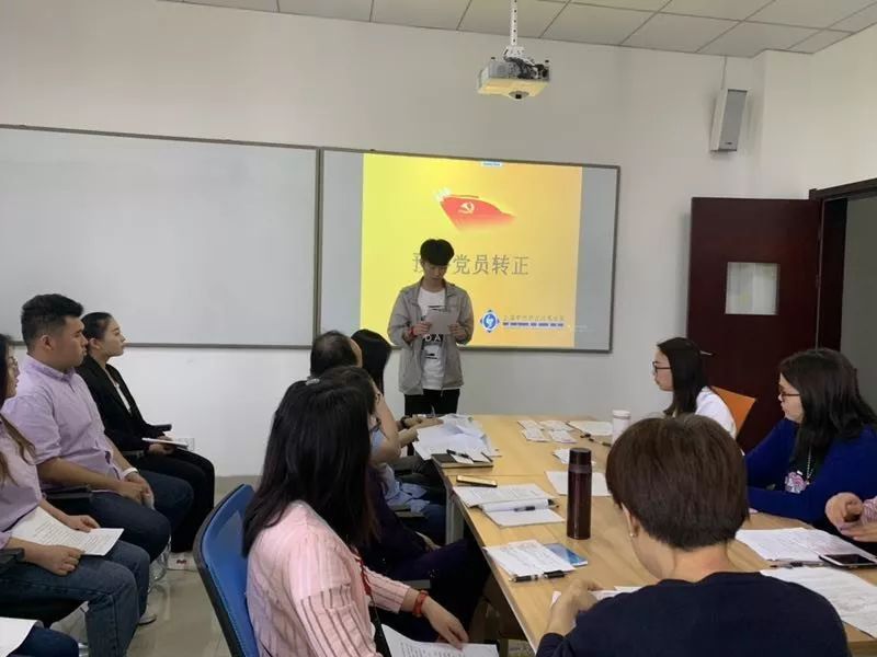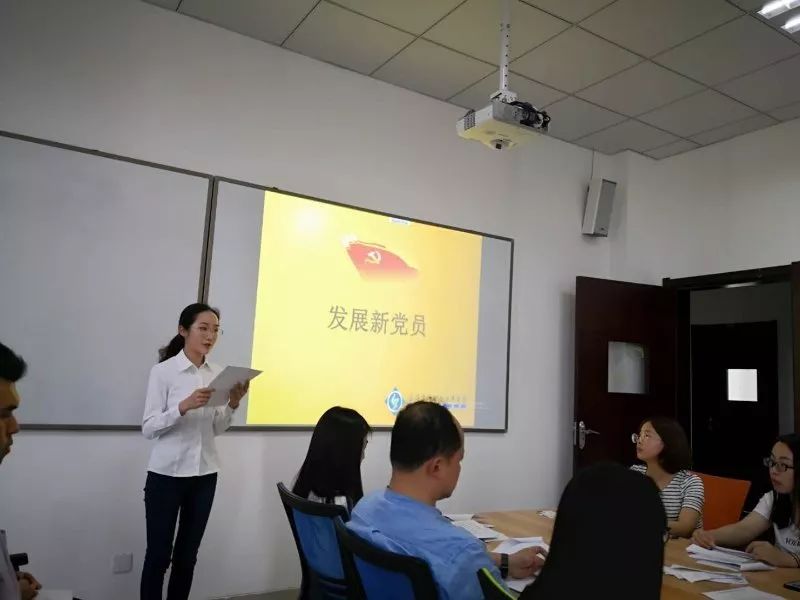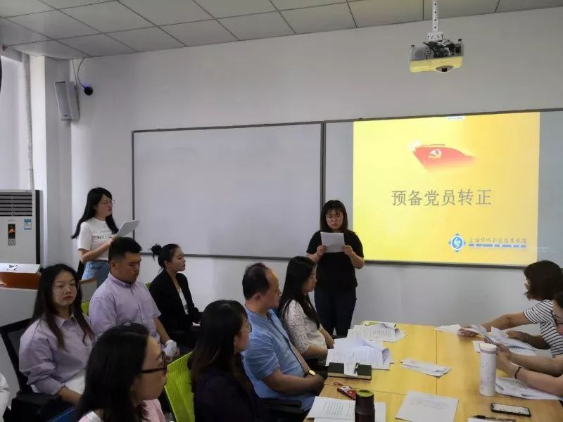 首先,四位同学依次上台做简短陈述,介绍自己从递交入党申请书以来在学习,工作、生活等方面的成长、进步和收获;入党介绍人和教师党员分别指出每位同学优点和不足,希望他们扬长避短,严于律己,做名副其实的中共党员。接着由预备党员胡臻云和陈丽雲同志宣读转正申请书,汇报了在预备期这一年期间的表现;教师党员分别指出了两位同学的优点优势以及努力方向。通过投票表决,应到14名,因培训和公事请假3人,全票一致通过,四位发展为中共预备党员;两位预备党员按期转正。管琰琰教授以及各位党支部的成员也对党组织新成员的加入表示了热烈的祝贺。
