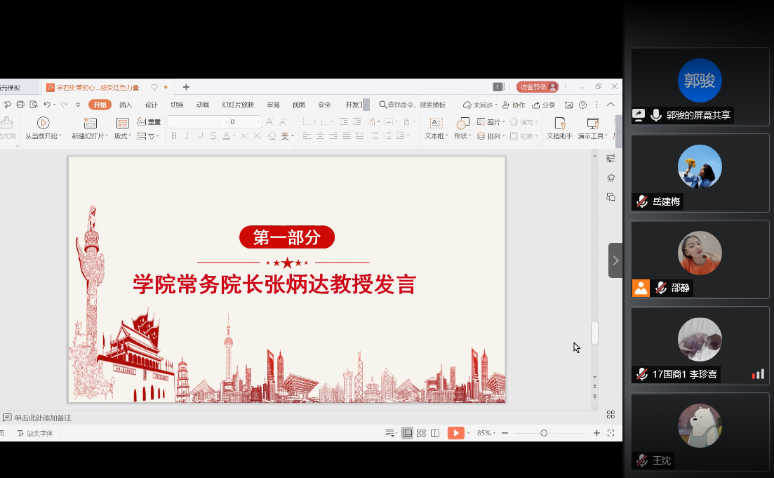 首先,常务院长张炳达教授发表讲话。张院长为我们讲述了在疫情防控背景下党和国家面临的挑战,尤其是以美国为首的境外势力对我国的无端攻击,对我国的政治、经济等各方面造成了严重影响。在这样的背景下,四史的学习尤为重要。张教授还谈到了学院以后的发展方向,以及广大师生党员接下来的工作重点。