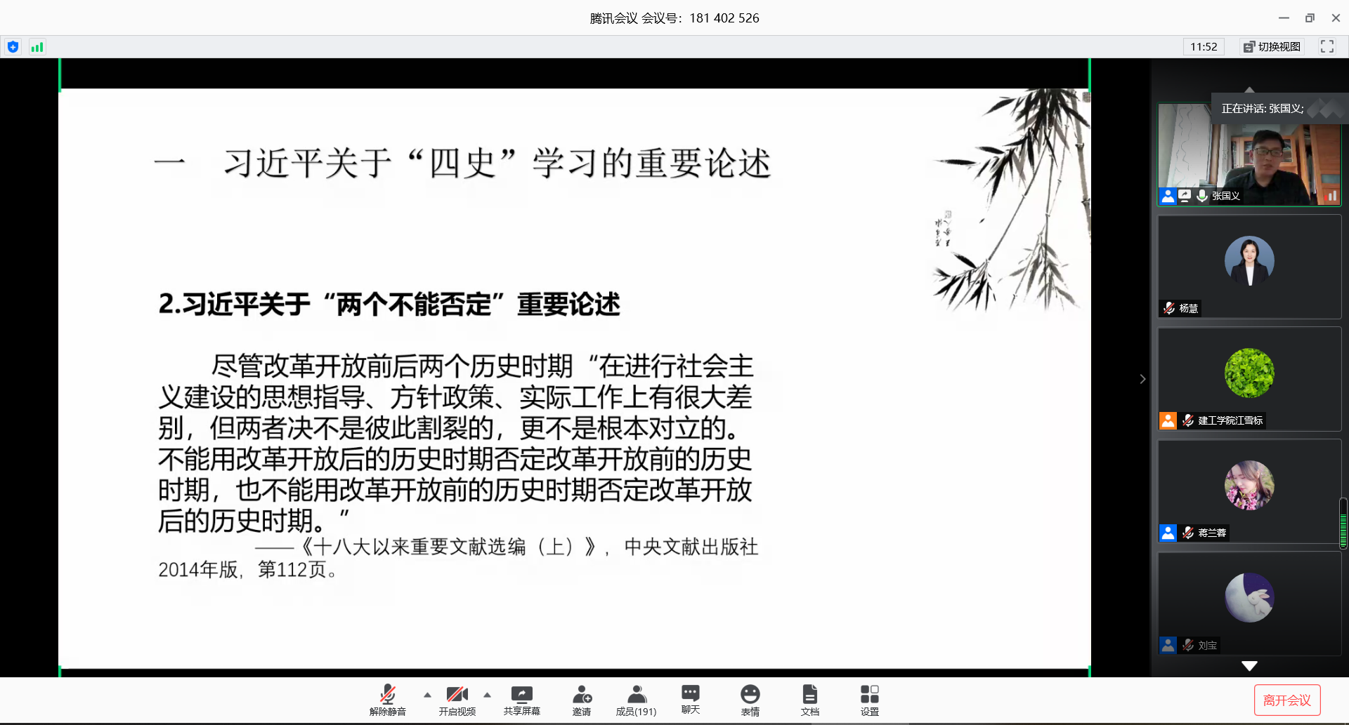 2020年5月29日经济与管理学院第二党支部全体党员教师参与建筑工程学院直属党支部开展的“新中国社会主义建设实践探索”---习近平关于“四史”学习的重要论述的学习,本次学习由上海对外经贸大学张国义教授主讲。