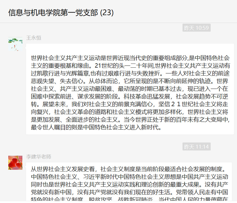 7月10日上午,信息与机电学院党总支组织师生党员、入党积极分子参加了由官进胜教授主讲的主题为“世界社会主义的发展进程与未来”的线上讲座,大家受益匪浅。