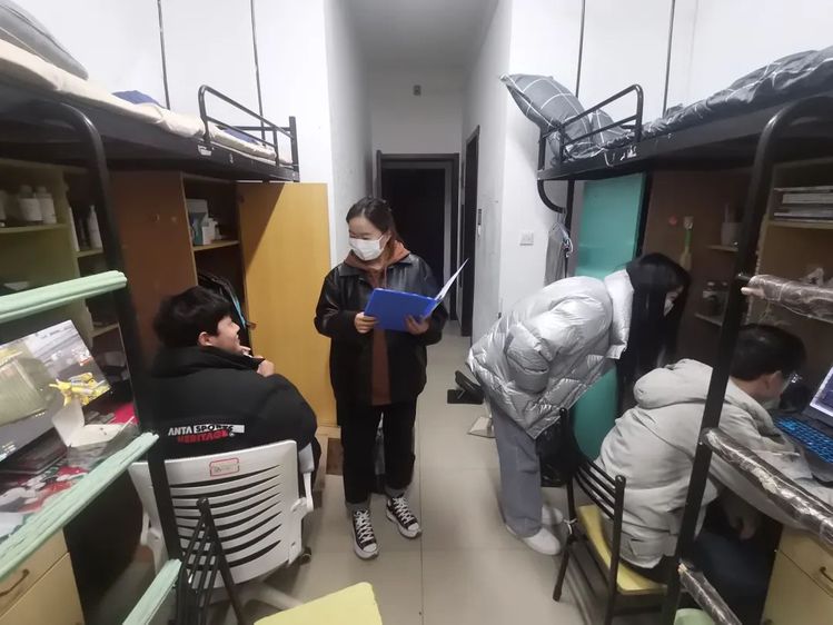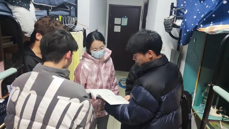 宿舍现场,党员教师们多次提醒同学们要坚持”防疫三件套“,牢记”防疫五还要“,叮嘱同学们要注意宿舍卫生,多通风、勤洗手,走出宿舍务必佩戴好口罩,绝对不能聚集,切实提高疫情防控意识。同时,老师们还不忘对目前网络诈骗不断升级的现状和疫情期间的防控要求进行引导,叮嘱学生们要擦亮眼睛,提高意识防范诈骗;提高站位,携手抗疫共克时艰。在交流中,学生们就专业学习、生活感受、个人成长等方面畅所欲言,通过零距离交流,专业课教师了解到学生们的各种困惑和需求,也使学生内心感受到老师的关心和爱护。