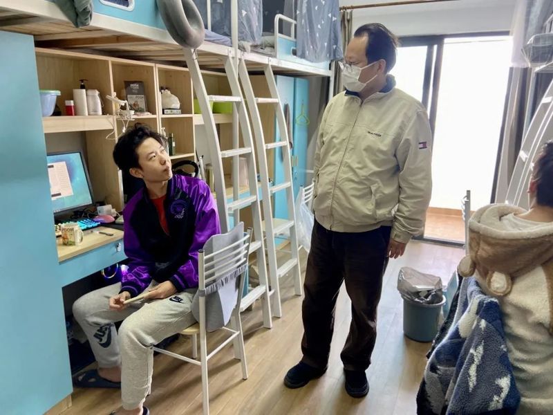 建筑工程学院副院长昌祥民深入学生宿舍,与学院各专业的同学进行亲切交谈。他仔细询问同学对课程的学习深度和接受程度,了解学生对教学的意见和建议,针对同学们在学习中的实际困难,提出解决办法和建议。寄语同学们对待专业要勤学苦练、勇于拼搏,提升综合素质,扎实专业素养;要把自己的小我融入祖国的大我,做到知行合一、以行求知、以知促行。