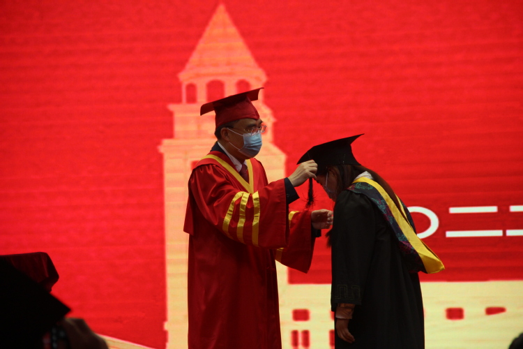 校长霍佳震教授为毕业生颁发毕业证书、拨学位帽穗。霍校长在讲话中首先感谢历年来为中侨建设和发展作出贡献的老领导、全体师生,感谢市教委、金山区政府和社会各界对学校给予的各方面的支持,感谢学校举办者致达集团与董事长严健军先生在学校建设与发展上精力与财力的全力投入与支持。并结合自己对职业教育的理解,解读了中侨大学“一体五翼”的办学定位,为中国制造培养一批批优秀的产业工程师的育人使命。霍校长为毕业生提出三点期许:第一是传承与发展,大学所给予我们的,不仅是学习知识、锻炼技能,更是一种精神经历。希望你们走出校园以后,更好的认识世界、认识自己、成就自己,不忘中侨“做人、做事、做学”的校训精神,不断自我鼓励、积极进取,用你们的成绩实现“青出于蓝而胜于蓝”,为母校争荣光,为国家做栋梁;第二是感恩与奉献,正是我们的家人、我们的学校、我们身处的时代,让生活变得丰富而有意义,并且这种养份仍在每天不断的让我们受益。希望你们常怀感恩之心,长存报恩之情,用所学所长反哺家庭与父母、反哺国家与社会,努力创造出自己的人生价值,也从而体验其中的乐趣;第三是坚持与创新,大学生涯的结束,可能是某一阶段系统学习的终点,但不意味着学习的止步。你们即将踏入职场的大社会,当有谋生的本领,当有一技之长,这恰恰是学习的开始,是创新的开始。希望你们养成终身学习的习惯,不断突破自我、超越自我。你们生逢一个伟大的时代、巨变的时代,只有强大的人才能站在这个时代的潮头。面对未来,“心有所信,方能行远”。霍校长勉励同学们以坚毅勇敢、奋进担当书写新的人生篇章。
