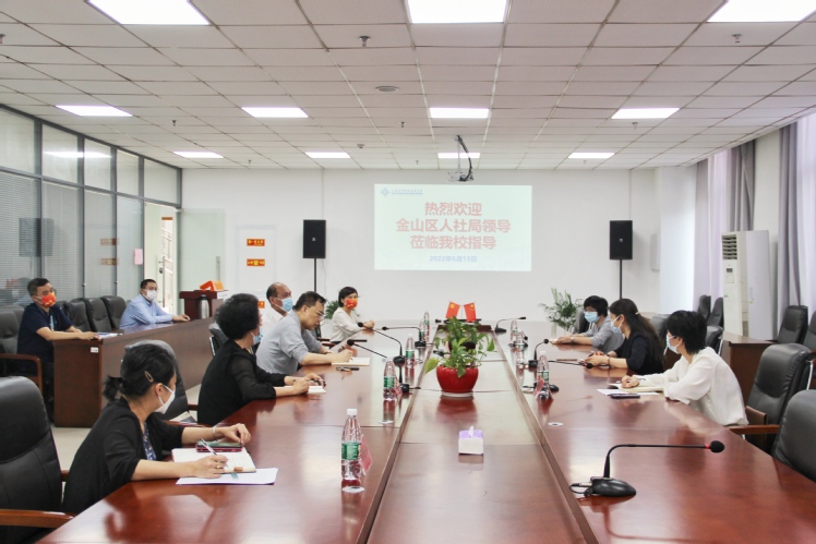 6月15日下午,金山区人才办常务副主任、区人社局党组书记、局长陆引娟以及局党组成员、副局长徐佳莅临我校调研指导工作。区人社局就业培训科科长吴玉英陪同调研。