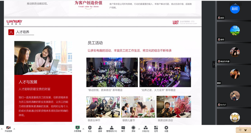 会议开始,就业办关睿介绍到前期有本科的毕业生投递简历到联蔚公司,通过企业和学生的沟通觉得学生各方面素质都不错,学生获得了企业的录用通知,企业主动联系到就业办,希望从学校能招聘到更多的优秀的学生前去实习,同时关老师介绍了后续校招的一些计划和安排,同时对企业愿意录用学校学生表示感谢,希望通过此次线上交流会双方能有进一步的了解,就业办将为双方提供保障和服务工作。