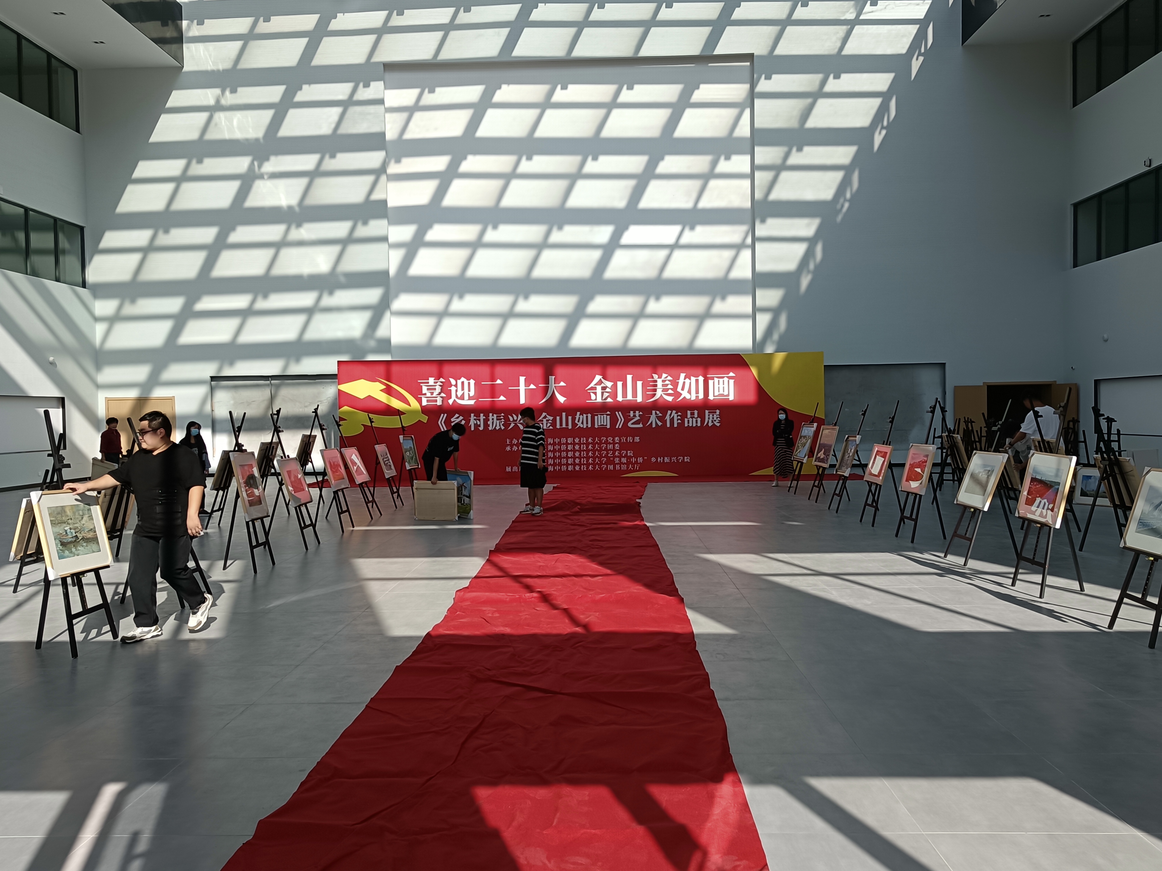 金秋送爽,丹桂飘香,在这美丽丰收的十月,我们即将迎来中国共产党第二十次全国代表大会的召开,为此学校党委宣传部主办,校团委、艺术学院、乡村振兴学院承办了"喜迎二十大 金山美如画"为主题的艺术展,发动艺术学院全体学生的创作激情,紧扣振兴乡村,金山如画为主线,展现新时代新农村新面貌,全方位推荐上海湾区三个百里的人文景观,讴歌党的十九大以来金山区深入推进乡村振兴战略的建设成就,为美好的新金山增添七彩浓墨。