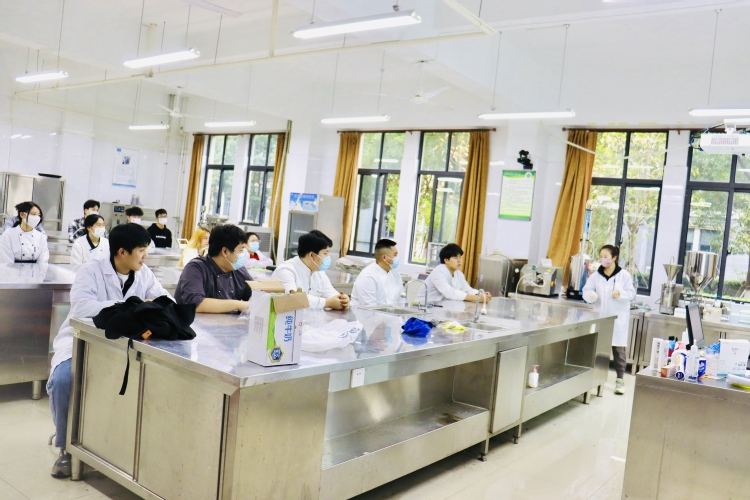 图一为食品药品学院烘焙班二年级同学正在上食品工艺学实验课