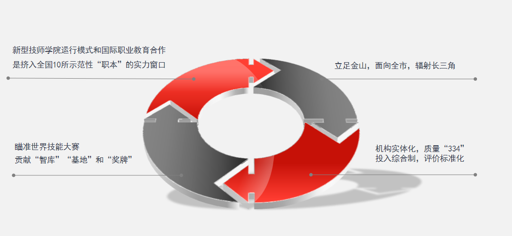 入选为新型技师学院后,学校将围绕上海建设"五个中心"和五个新城、打响"四大品牌", 聚焦三大先导产业、 六大产业集群,以及长三角一体化人才市场需求调整优化专业布局。依托产教融合、校企合作工作机制,坚持服务产业发展,完善需求导向的高技能人才培养,以促进、引导就业为导向,以培养、提升学生思想道德修养、人文素质、专业技能水平、综合职业能力、新技术应用能力、创新发展能力为核心,以“产教融合、 协同育人”为重要抓手,至“十四五”末,将学校建设成为特色鲜明、产教融合 优势突出的职业教育高素质技能人才培养基地、上海职业院校产教融合的创新示 范基地、金山地区特色优势产业发展的集成服务基地,高规格、高水平打造在上海市内具有标杆性、引领性、示范性的一流新型技师学院。