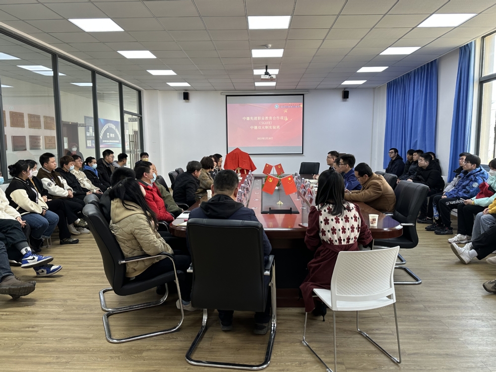 2月20日下午2点,智能制造学院在9号楼306会议室举办“中德SGAVE双元制实验班开班仪式”。上海中侨职业技术大学副校长、智能制造学院院长黄立新,智能制造学院党支部副书记温友保,智能制造学院副院长李儒琼和陈纯教授,校教务处副处长柳伟,国际交流处处长王凌和学院相关人员同30位中德SGAVE实验班的同学参加了此次开班仪式,开班仪式由李儒琼主持。