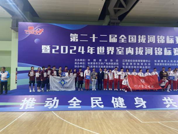 4月23日,第二十二届全国拔河锦标赛暨2024年世界室内拔河锦标赛选拔赛在张家港市举办。本届赛事由中国拔河协会、江苏省社会体育管理中心、张家港市人民政府主办,作为近三年国内水平最高的竞技拔河赛事,吸引到了包括中国拔河国家队在内的众多世界冠军、全国冠军队伍及知名高校队伍共计42支。上海中侨职业技术大学拔河队在U23组别混合组:580公斤级及900公斤级中分别获得全国第二、第四名。