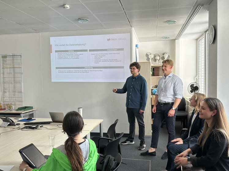 图为DHBW国际商务三年级学生报告其为政府回收中心做出的改良方案。