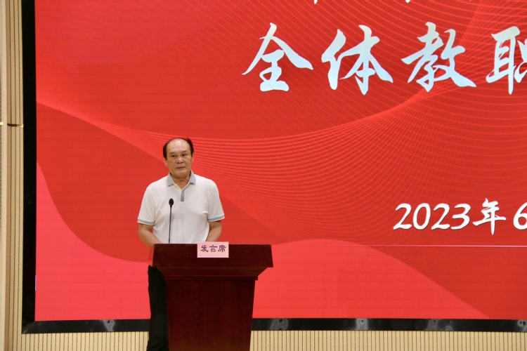 6月26日,我校召开2023年上半年全校教职工大会,回顾总结学校2023年上半年工作,部署2023年下半年重点工作任务。全校教职员工参加会议,会议由学校党委书记平杰主持。