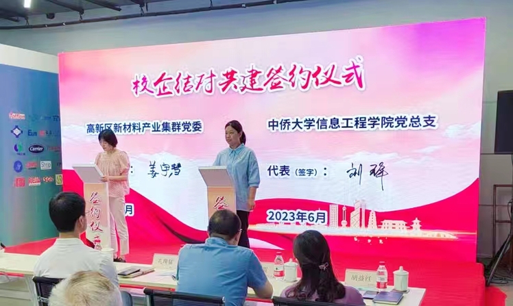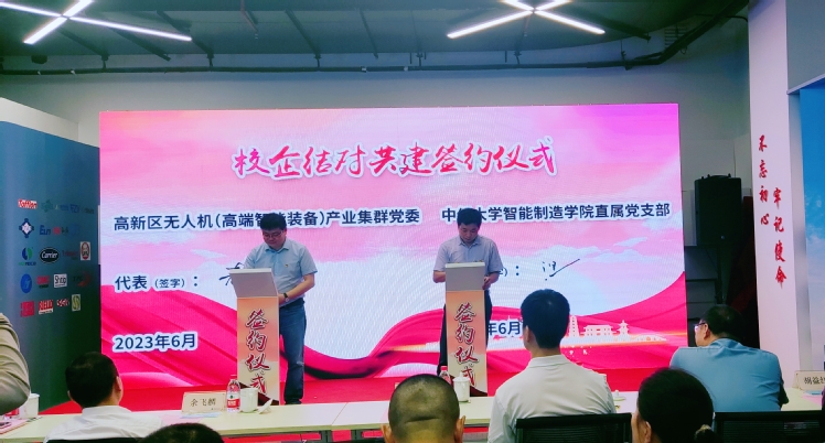 为深入学习贯彻习近平新时代中国特色社会主义思想和党的二十大精神,全面把握好新时代党的建设总要求,按照党建引领、共建共享原则,进一步构建高质量一体化的校企结对共建新格局,于6月29日下午,在高新区庆祝中国共产党成立102周年大会暨华东无人机(高端智能装备)产业集群党建服务站启用仪式上,上海中侨职业技术大学信息工程学院、食品与药品学院,智能制造学院三家学院党组织分别与高新区新材料产业集群党委签订党建结对共建协议书。