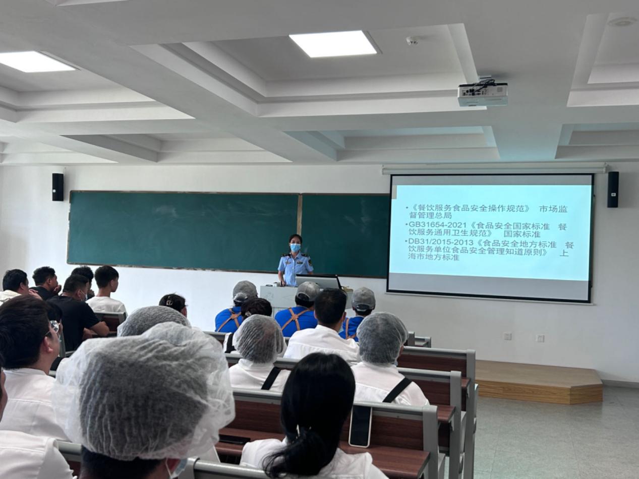 为切实做好学校食堂管理工作,确保学校师生饮食健康安全,9月5日下午,上海中侨职业技术大学后勤保卫处联合张堰市场监管所对3个食堂全部从业人员开展食品安全操作规范专题培训。学校分管副校长、后勤保卫处副处长、食品安全总监、食品安全管理员以及从业人员150余人参加了此次培训。
