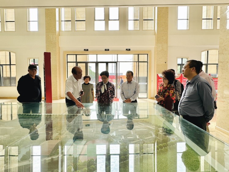 (会前,黄小华会长一行先后参观了校园发展规划沙盘图、校园设施、张堰古镇等)