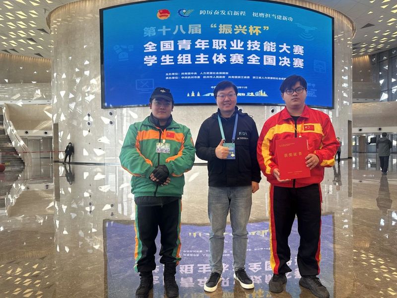 11月28日,第十八届“振兴杯”全国青年职业技能大赛学生组主体赛全国总决赛在杭州落下帷幕。信息工程学院派出了2支队伍分别由路秋静老师和齐福利老师指导参加的智能硬件装调员和无人机驾驶员两个赛项,经历了2天激烈的角逐,最后智能硬件装调员赛项的22物联本科1班的毛文骏同学获得优胜奖。