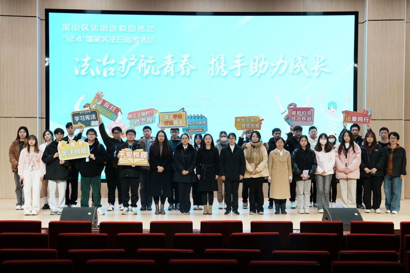 今年12月4日是第十个国家宪法日,上海中侨职业技术大学积极开展宪法宣传月活动。由金山区妇女联合会、金山区人民法院、金山区人民检察院主办,上海中侨职业技术大学承办的“法治护航青春 携手助力成长—金山区法治进校园活动”于12月1日在学校图书馆2楼学术厅举行,金山区妇联维权干部时蓓莉,区检察院第一检察部副主任施翀,区法院民庭审判员江彧超,区法理情女子会秘书长、上海金亭律师事务所律师葛怡忆,在校同学参与此次主题学习活动。