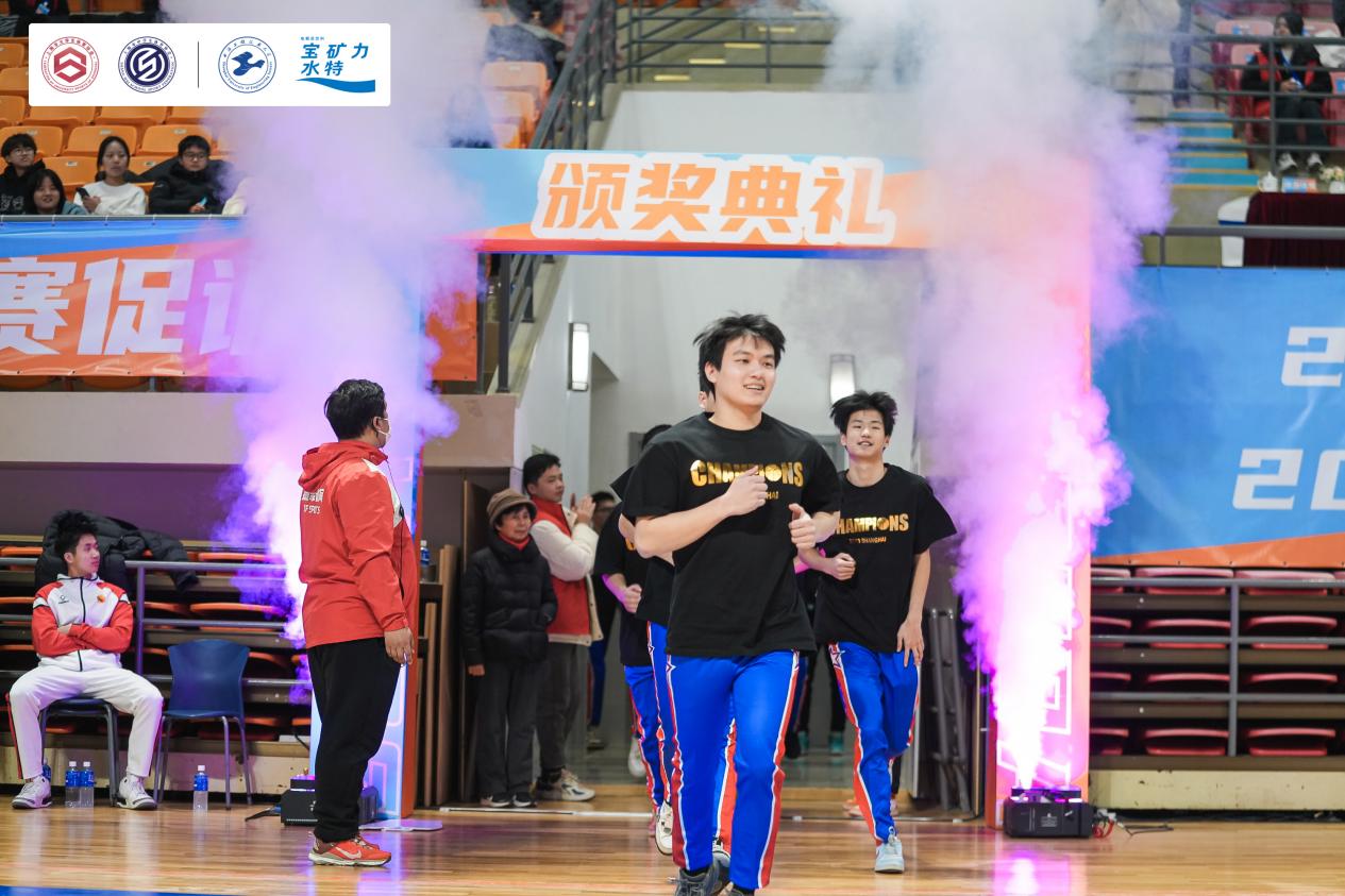 总决赛对手是上届比赛我队排位赛争夺七八名获胜的震旦学院,他们半决赛战胜实力强劲的城建学院,实力不容小觑。开场后也许因为紧张心态和严寒气温的影响,我队并未完全展现出前两场淘汰赛的进攻表现,连续错失空位投篮和篮下机会,但依靠篮板球和防守端的优异表现始终领先一定分数。第三节对方依靠联防和反击曾打出一波流反超1分,我队及时调整张玉辉连得5分再次超出比分,前三节33:28领先5分结束。来到末节我队牢牢把握比赛节奏,稳步扩大比分优势,尤其梁崇伟全场抢下21个篮板居功至伟,最终我队拿下对手,获得校史首冠!