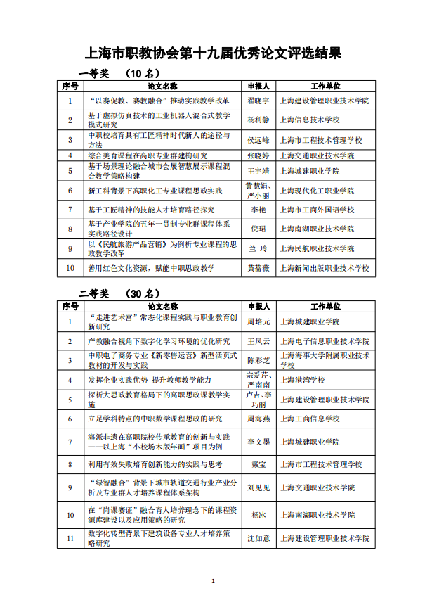 近日,为落实中办国办《关于深化现代职业教育体系建设改革的意见》《关于推动现代职业教育高质量发展的意见》和《国家职业教育改革实施方案》等一系列重要文件精神,结合上海市职业教育改革发展实况,围绕坚持立德树人、展现创新技术技能型人才培养模式、深化产教融合和校企合作、推进内涵建设和提高教育教学质量等方面的经验与成果,上海市职业教育协会组织了2023年上海市职业教育协会“超星杯”优秀论文评选活动。