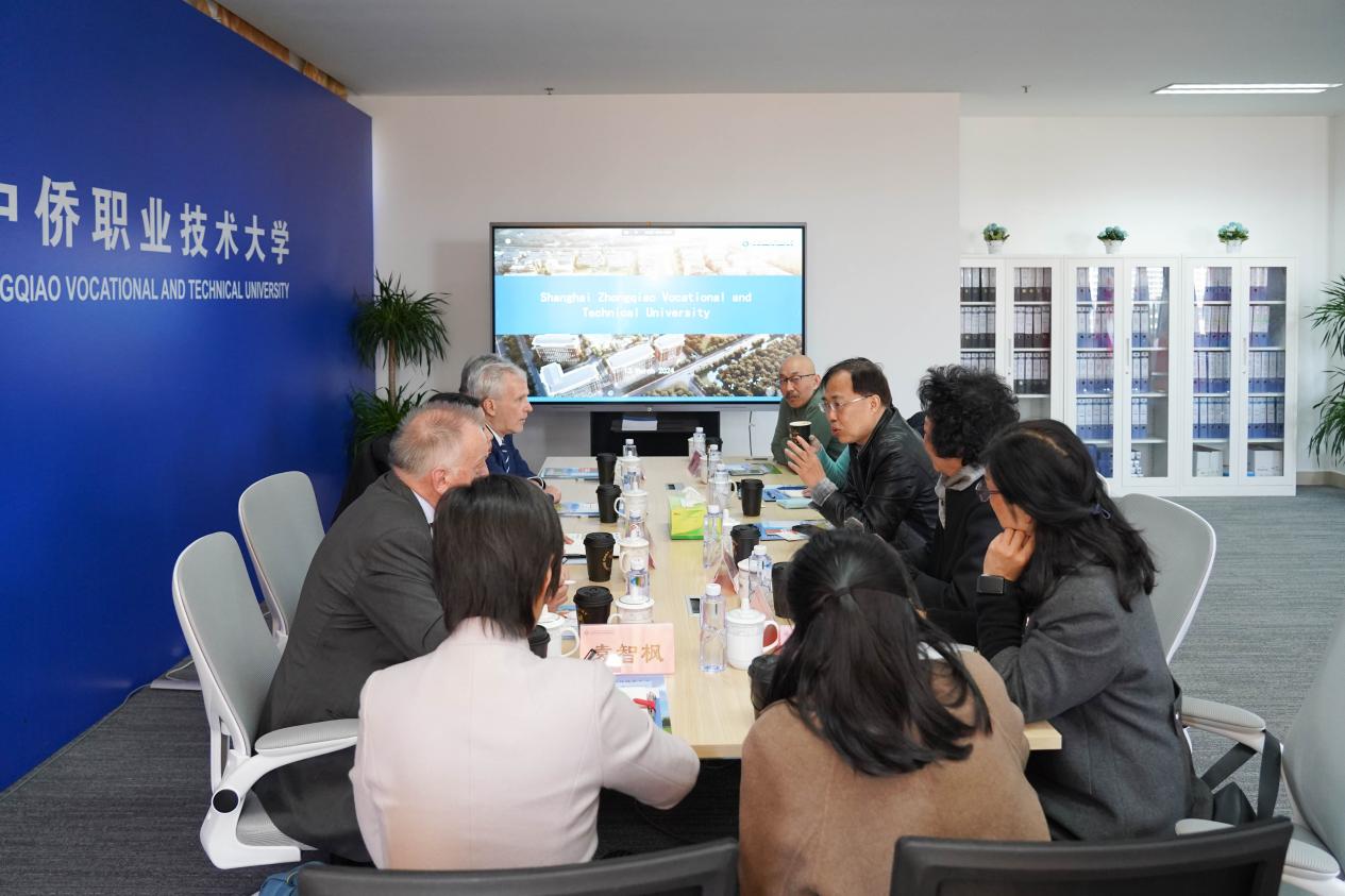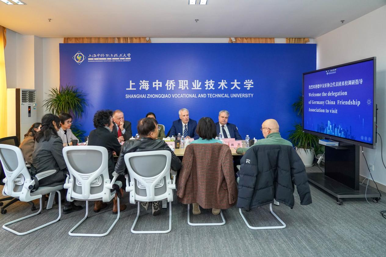 3月13日,德中友好协会代表团一行来访中侨大学调研指导。代表团成员包括团长、德中友好协会主席珞丁·拉莫拉特(Luoding Lammel-Rath),协会董事克劳斯·拉丁瑟(Klaus Ladinser)、协会成员汉斯·穆西格(Hans Peter Muessig)、协会成员恩里科·弗莱斯(Enrico Flath),市友协欧美处副处长袁智枫及市友协欧美处王嘉洋出席调研会。上海中侨职业技术大学校长霍佳震、副校长刘淑芸、国际教育学院院长严蕙及外国语学院院长李梅参与会议。