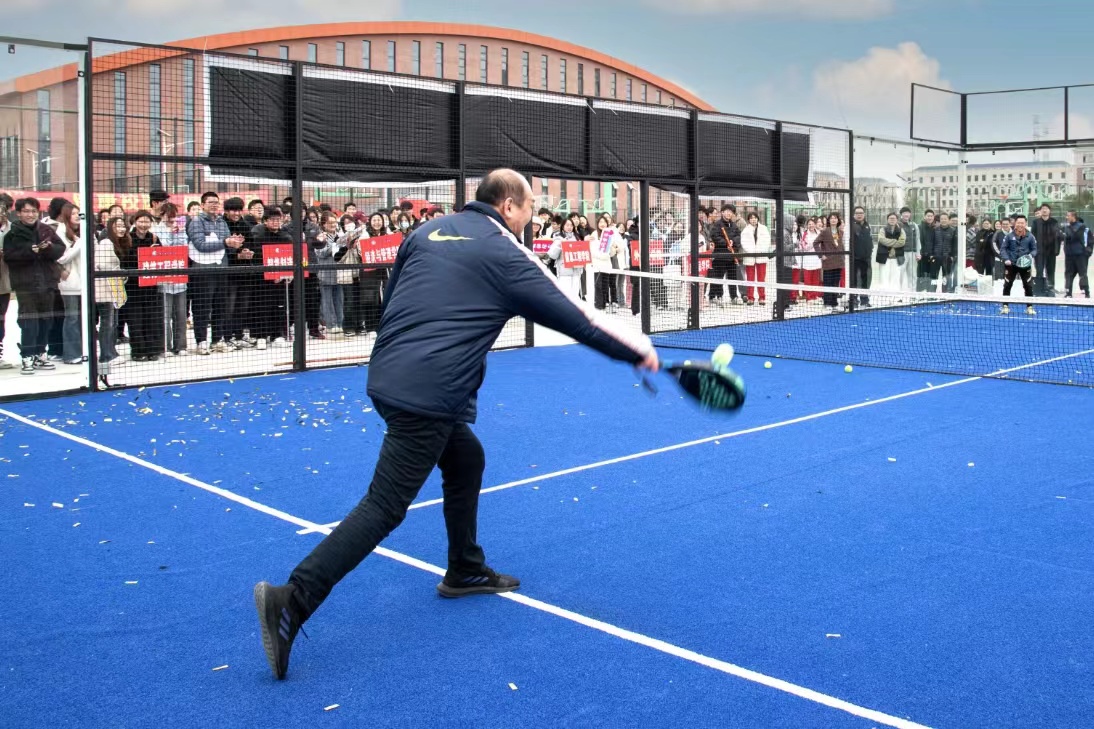 活动现场,平杰书记和蔡以达先生共同为新场地开球。球拍击球的清脆声响彻整个球场,板式网球运动在上海中侨职业技术大学正式展开新的篇章!相信在未来的日子里,这块球场将成为师生们休闲锻炼、竞技交流的重要场所,为校园生活增添更多色彩和活力。