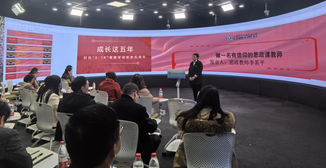 今年是习近平总书记在学校思想政治理论课教师座谈会上发表重要讲话五周年,为深入学习贯彻习近平新时代中国特色社会主义思想,推动思政育人工作高质量发展,总结部署学校思政课改革创新相关工作,3月15日,上海中侨职业技术大学在数字全景会议室召开“牢记习近平总书记‘3.18’重要讲话精神,做党和人民满意的思政课好教师”座谈会。党委书记平杰及马克思主义学院全体思政课教师参加座谈会。马克思主义学院教师于跃跃主持会议。