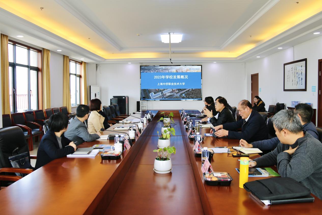 霍佳震校长汇报了学校2023年发展情况、产教融合工作情况,对区领导们来校调研和指导表示欢迎。他表示,中侨大学近年来积极探索与发展产教融合人才培养模式,不断搭建校企协同育人创新平台,成功获批市域产教联合体、共同体、市级新型技师学院。学校坚持面向现代产业培养创新型人才,促进产教融合深度发展,积极寻求与区域经济深度融合的育人模式,共同打造高素质技术技能人才的培养模式。