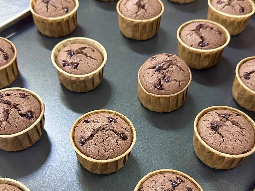 经过高温焙烤,巧克力曲奇酥脆松软,玛芬入口轻盈顺滑。