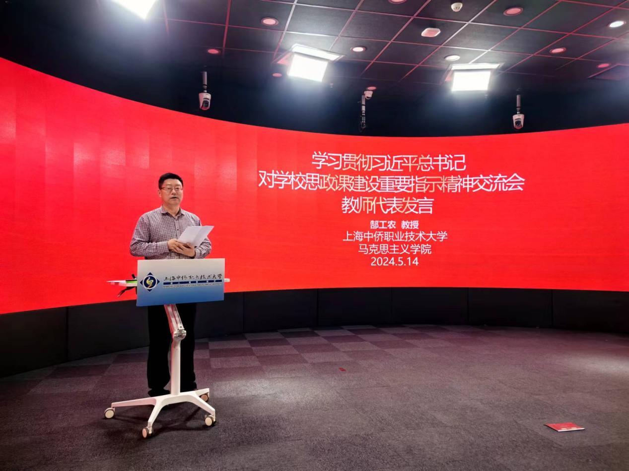 在教师讨论交流环节中,郜工农教授以“探索适合中侨大学自己的现代思政课建设新路”为题,结合学校实际,分别从三个方面进行深刻阐释:一是紧扣大学教育使命,坚持思政课建设与党的创新理论武装同步推进,制订大学自身特色的思政课建设发展规划。二是积极探寻思政小课堂和社会大课堂结合的支点平台。三是加强思政课师资队伍建设,激发思政工作者的内生动力,提高思政教师的积极性、创造性。
