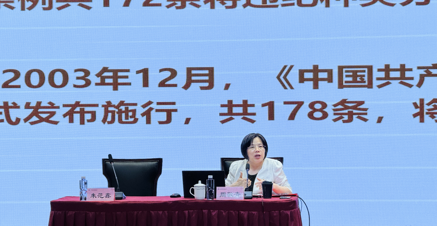 周敬青教授作“为新征程推进全面从严治党提供坚强纪律保障——《中国共产党纪律处分条例》解读”专题辅导报告。围绕深入学习贯彻习近平总书记关于加强党的纪律建设的重要论述,从开展党纪学习教育的背景意义、《条例》的“立法”精神、基本构架、主要内容和修订之处,以及党员干部如何做到“讲规矩、守纪律;知敬畏、存戒惧”四个方面进行了系统、全面、深入的解读和阐释,并结合具体案例进行深刻剖析,对党员干部进一步准确理解和把握《条例》的内涵要义和实践要求,切实增强贯彻落实的自觉性主动性,具有很强的指导性、针对性和警示教育性。